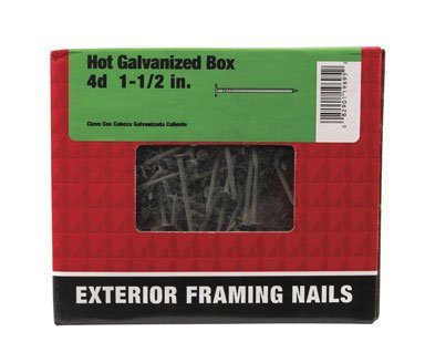 Ace Exterior Framing Box Nail 1-1/2 4d Hot Galvanized For Corrosion Resistance For Exterior Framing And Box Making Large Flathead, Thinner Shank Than Common Nail To Reduce Splitting For Use With All Treated Lumber 5 Pound Box All items sold new in original packaging